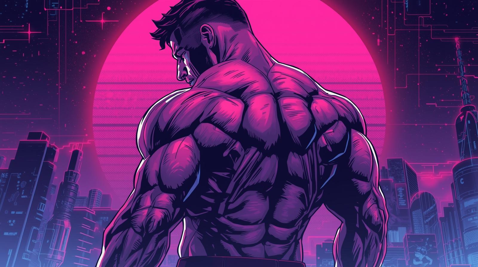 大きく肥大した筋肉群は、前面の大胸筋や腹筋などはもちろんなのですが、背中の筋肉がとにかくすごいです。